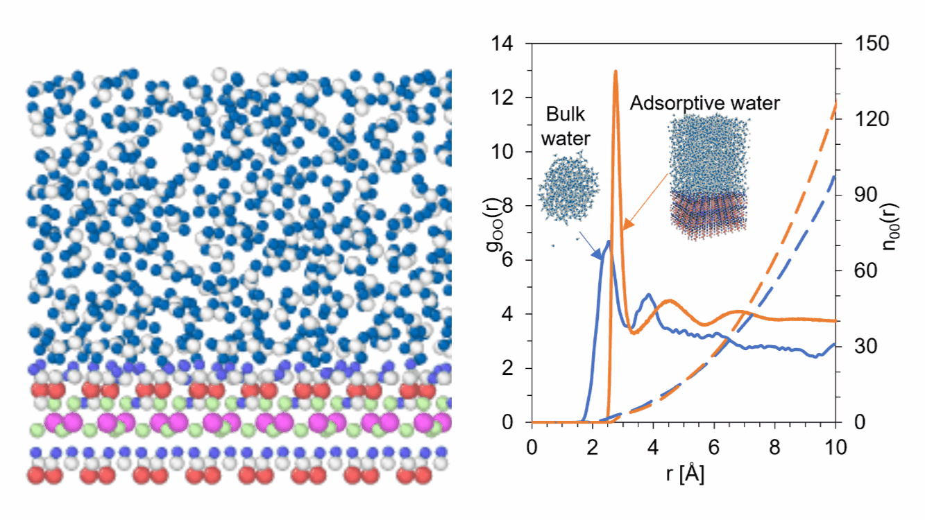 - Adsorptive water in soils exhibits a more structured hydrogen bonding (HB) network compared to bulk water, but accurately detecting the HB network density of adsorptive water in soils remains challenging. This work aims to utilize molecular simulation to quantitatively characterize the amount and density evolution of adsorbed water in soils within a drying-wetting cycle.